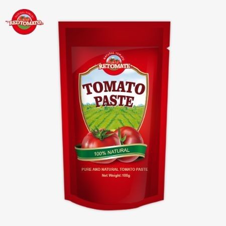 Le sachet debout de 100 g est populaire pour l'emballage de la pâte de tomate, un condiment concentré largement utilisé dans la cuisine.